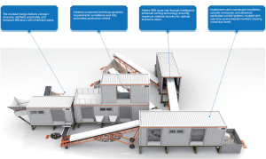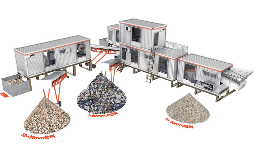 وحدة الفرز الدقيق: تقوم أجهزة الفرز البصري المحسّنة بالذكاء بتحديد وإخراج الملوثات المتبقية في المواد 10-80 مم، لتحقيق محتوى شوائب أقل من 5٪. الناتج النهائي: الركام الناعم 0-10 مم؛ الركام الخشن المنقى 80 مم (يتم سحقه اختياريًا عبر كسارة الصدم)؛ المعادن الحديدية؛ الأجزاء خفيفة الوزن.