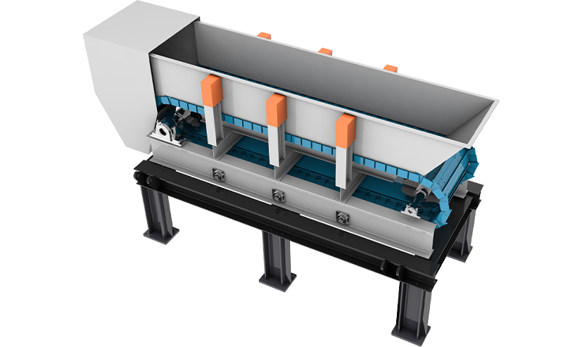 • مغذي المئزر DMBL1238: يتم تثبيت قادوس التغذية في الجزء العلوي وقادوس التفريغ في الجزء الأمامي؛ يجب أن يتمتع الإطار بصلابة جيدة وقدرة تحمل جيدة، وأن يتمتع بمقاومة ممتازة لتأثير المواد الفوري.